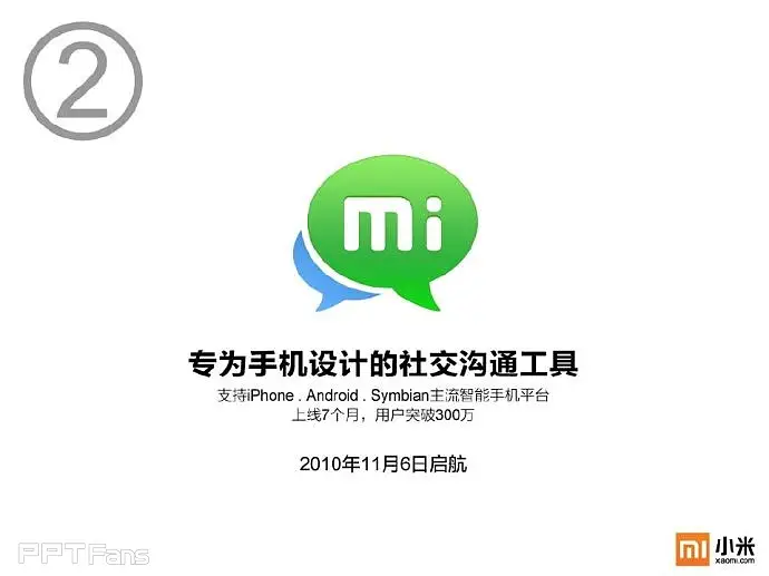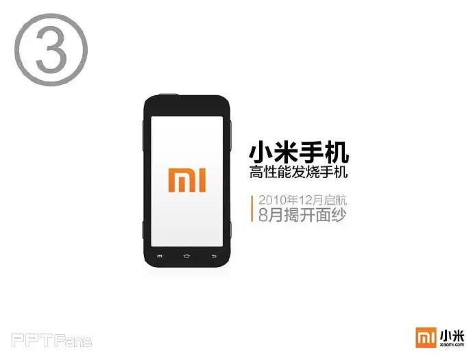 雷军的PPT一看就知道出自专业设计师之手,精致简约,为小米手机的形象传播加分不少。很多人对PPT的理解还停留在办公软件和演讲辅助工具上,其实在品牌形象传播角度上讲,PPT同样有不可取代的作用,因为在很多场合,PPT是面向企业外界的,是企业形象宣传的一个重要窗口。