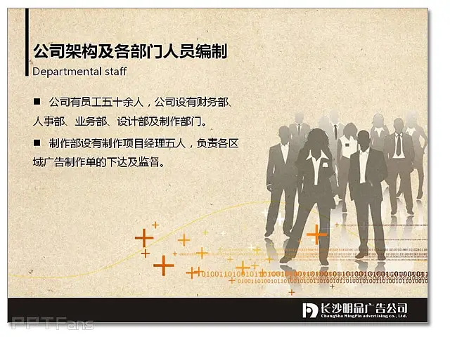 5、如果有些页面文字比较少的话,可配适当的插图,这页的内容其实可以配以公司员工队伍实景照片,但为表现专业的美感,也可用如下的插图代替