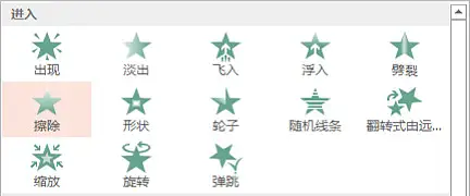 选择【进入】中的【擦除】动画,然后点击【添加动画】左边的【效果选项】,为擦除动画设定擦除的方向。这里我们选择【自左侧】。