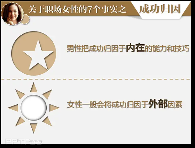 表示发散的图形很好找,这个十六角星的形状在PPT的自选图形中就有,我用2013版PPT的拆分功能使它的外部光环和圆形分离开,分别填充了不同的颜色,用这个向外发散的示意图形来表达“外向”的概念。