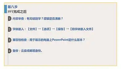PPT完成并不代表操作结束,一些疏忽可能会毁掉几个小时甚至几天的心血。完成PPT后请注意是否有做到: