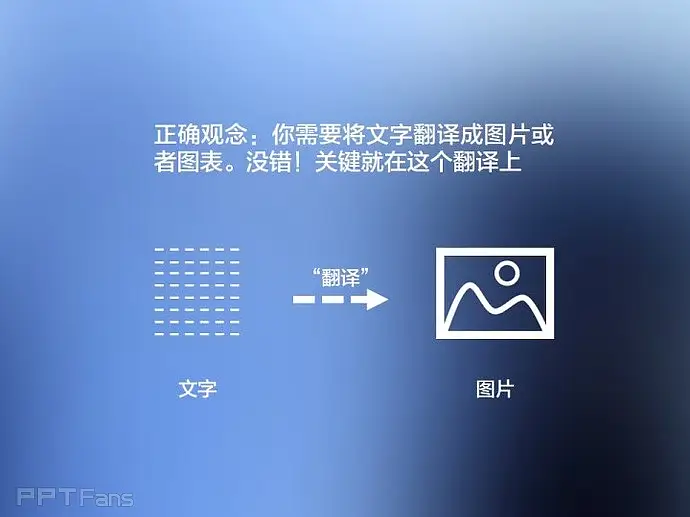 正确观念:你需要将文字翻译成图片或者图表。没错!关键就在这个翻译上。