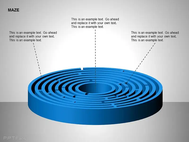 圆形立体蓝色迷宫三方面图示三部分说明