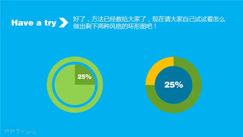 好了,方法已经教给大家了,现在请大家自己试试看,怎样做出剩下两种风格的环形图吧。