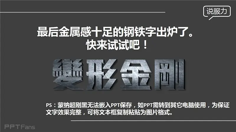 最后金属感十足的钢铁字出炉了,快来试试吧。