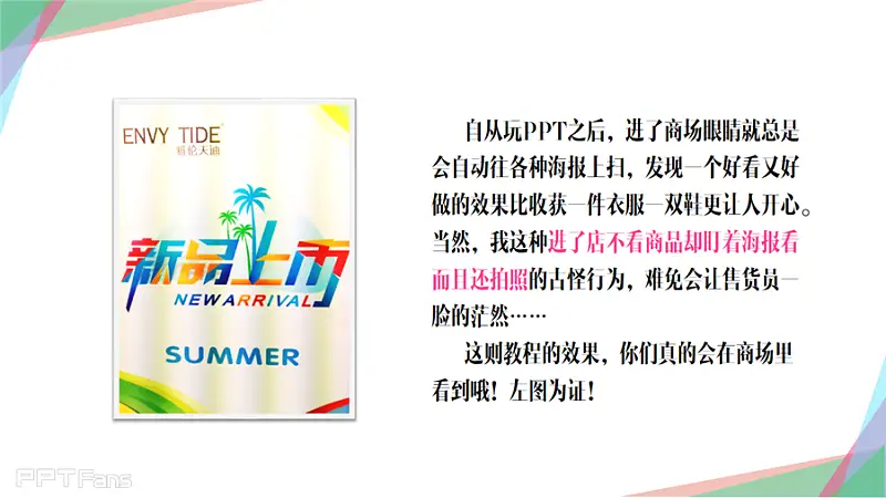 自从玩PPT之后,进了商场眼镜就总是会自动往各种海报上扫,发现一个好看又好做的还白效果比收获一件衣服一双鞋子更让人开心。当然我这种进了店不看商品却盯着海报看而且还拍照的古怪行为,难免会让售货员一脸茫然......
