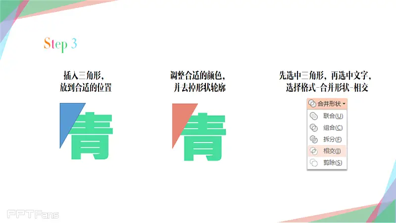 PPT妙用形状制作缤纷色彩字教程,将教会大家怎样去把PPT的文字通过切割成多块,然后涂上不同的颜色,形状的合并、裁切妙用,可以做出很多你意想不到的效果。