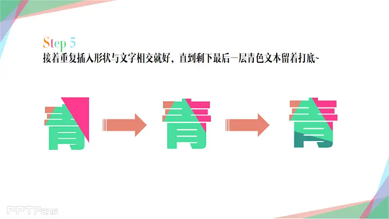 接着重复插入形状与文字相交就好,知道剩下最后一层青色文本留着打底