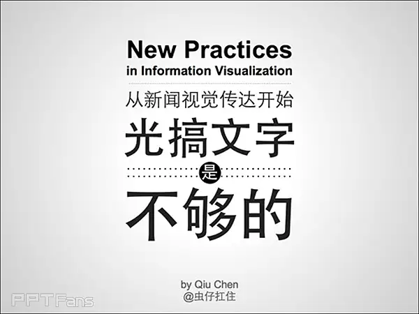 本教程来自于@虫仔扛住,讲述信息视觉化设计的心得,无私分享,精品教程,不容错过。是PPT视觉化设计提高与学习,不可不看的好教程。