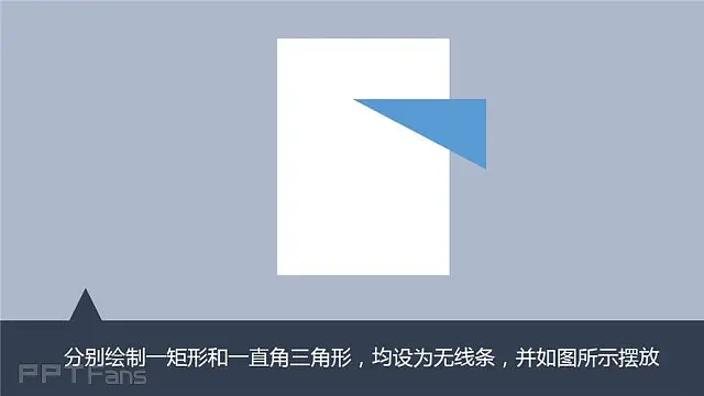 第一步:分别绘制一个矩形和一个直角三角形,均设为无线条,并如图所示摆放。