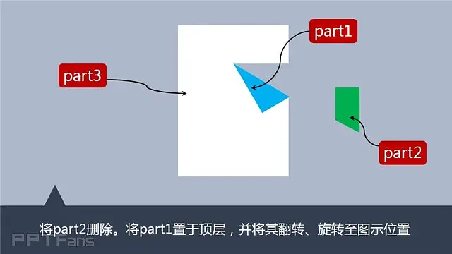 第五步:将Part2删除,将Part1置于顶层,并将其翻转,旋转至图示位置