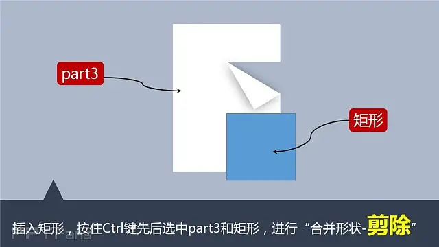 第七步:插入矩形,按住ctrl键先后选中part3和矩形,进行“合并形状-剪除”