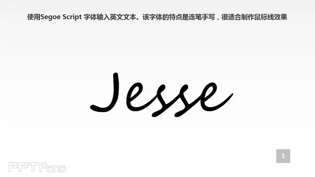 使用Segoe Script字体输入英文文本。该字体的特点是连笔手写,很适合制作鼠标线效果。