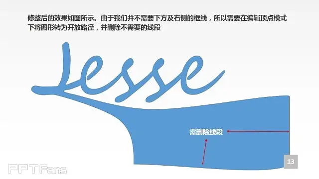 修整后的效果如图所示。由于我们并不需要下方及右侧的框线,所以需要在编辑顶点模式下将图形转为开放路径,并删除不需要的线段。