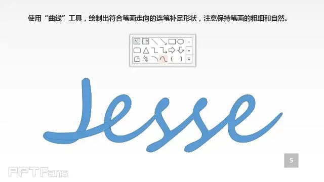 使用“曲线”工具,绘制出符合笔画走向的连笔补足形状,注意保持笔画的粗细和自然。