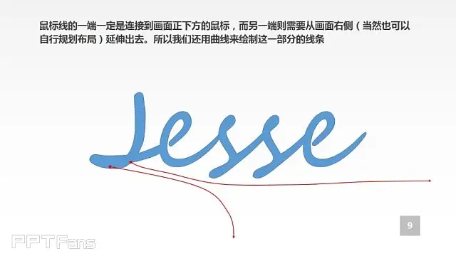 鼠标线的一端一定是连接到画面正下方的鼠标,而另一端则需要从画面右侧延伸出去。所以我们还用曲线来绘制这一部分的线条。