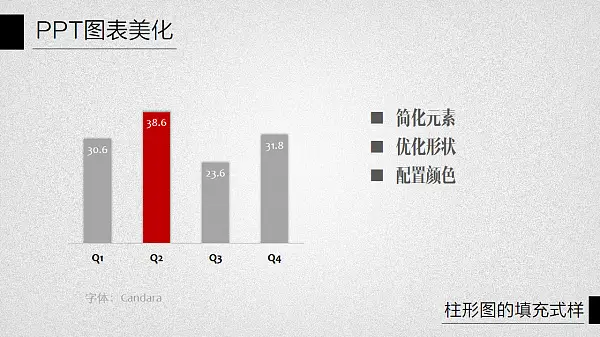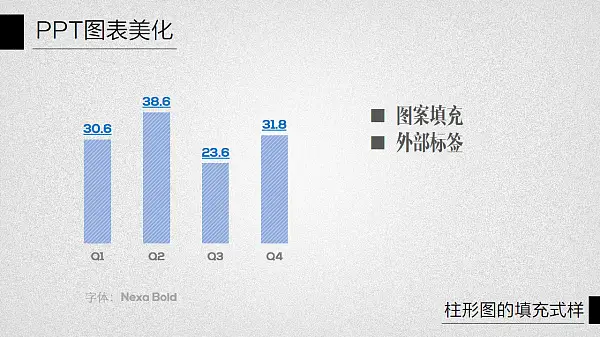 显然,图表的美化并没有唯一确定的标准。PPT的使用场景以及版式风格的不同,图表的式样也会有不同的美化方向。在这一节中会给大家推荐一些比较通用的柱形图填充式样类型,抛砖引玉供大家参考。