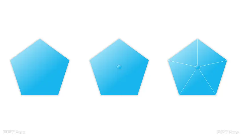 Yoyoo的解决办法:很简单,PPT插入图形里面不是有三角形、正方形形、五边形、六边形....十二边形么?下面是用五边形来做PPT区域的五等分。