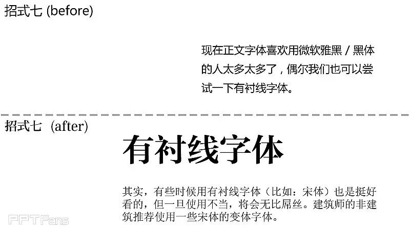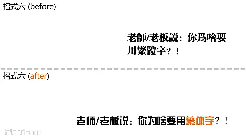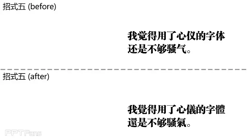 解读:觉得效果还是不理想的时候可以考虑换换繁体字,不过很多时候会带来阅读的不便和领导的质疑。