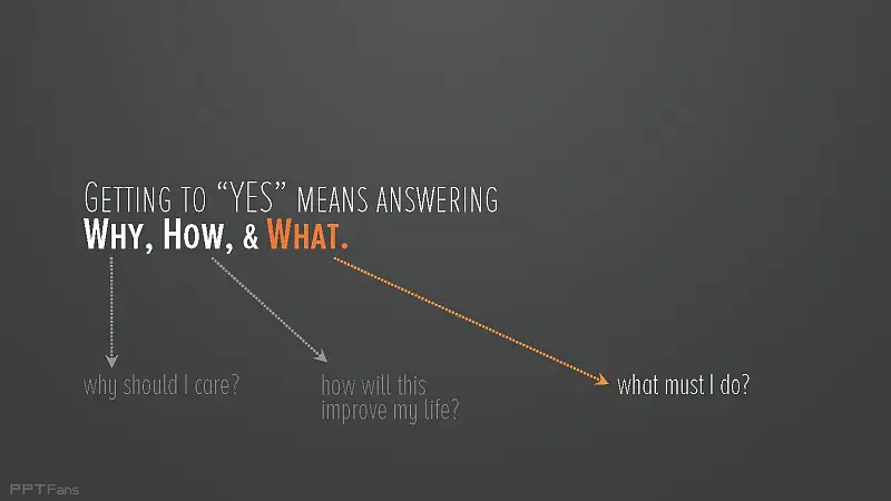让你的观众Say YES,你需要回答的信息包括:为什么,怎么做,做什么。