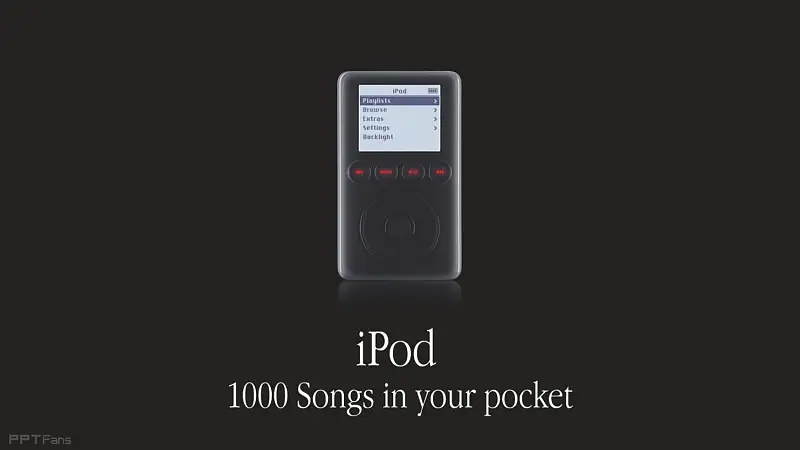 乔布斯在介绍iPod时的广告语是——它是你口袋里的1000首歌!
