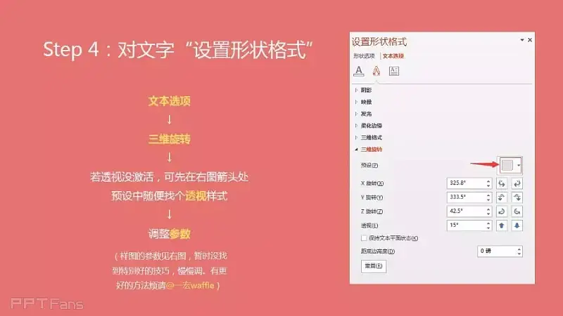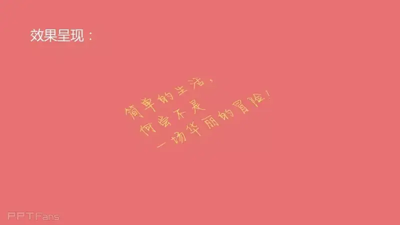 三分钟教程的标题,总是比较“含蓄”,所谓跃然纸上就是用PPT做文字仿真效果。一般做文字仿真,我们都需要用到ps,文字选择手写体、经过自由变换,各种三维角度旋转,然后得到仿真效果。