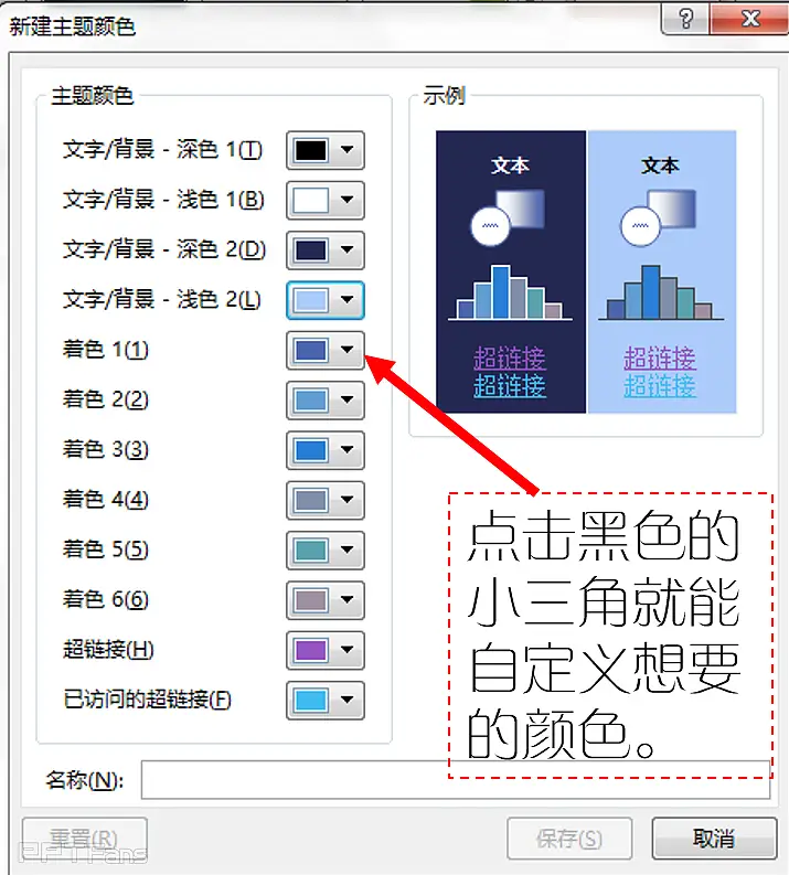 如图,找到【颜色】,里面有较多的预设颜色主题。如果仍不满足,可以在最下面的【自定义颜色】中自己设置颜色主题。