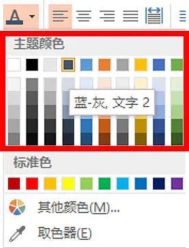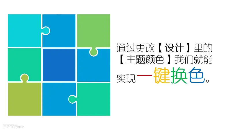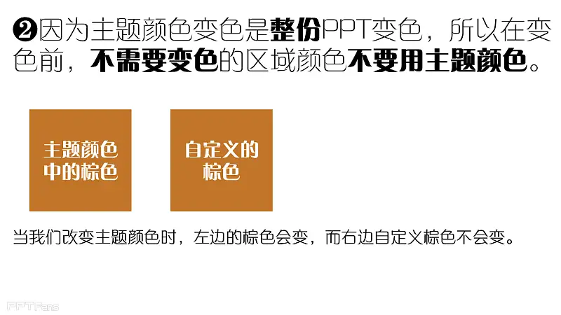 ❷ 因为主题颜色变色是整份PPT变色,所以在变色前,不需要变色的区域颜色不要用主题颜色。