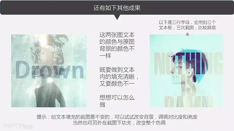 全图形、大量留白、大色块等排版方式,都可以使得PPT显得高大上。几天还将通过教程,介绍一种新的高大上技能——文字填充。