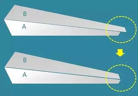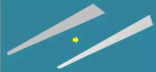 这时我们发现扇叶的A和B两部分经过三维旋转后不一样长了,出现了问题1。