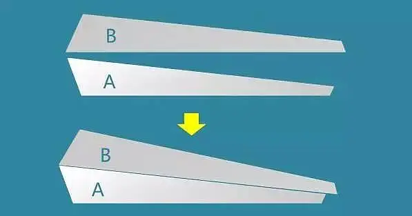 按照原教程的步骤,完成到步骤12时,发现形状A和B两部虽然由同一直角矩形复制得到,但经过三维旋转后不一样长了。