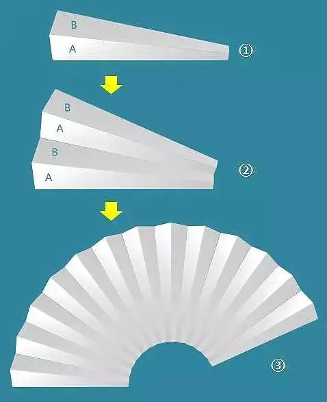 到这里,就能看到扇面的大概形状了。因为形状A和B经过了三维旋转,自然呈现出折扇的立体效果,不需要另行设置。