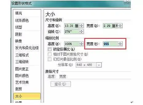 5、再次右键点击B,选择设置形状格式→大小,如下图调整其宽度,让A和B看上去一样大。这样,我们就解决了第一个问题——大小不一样。