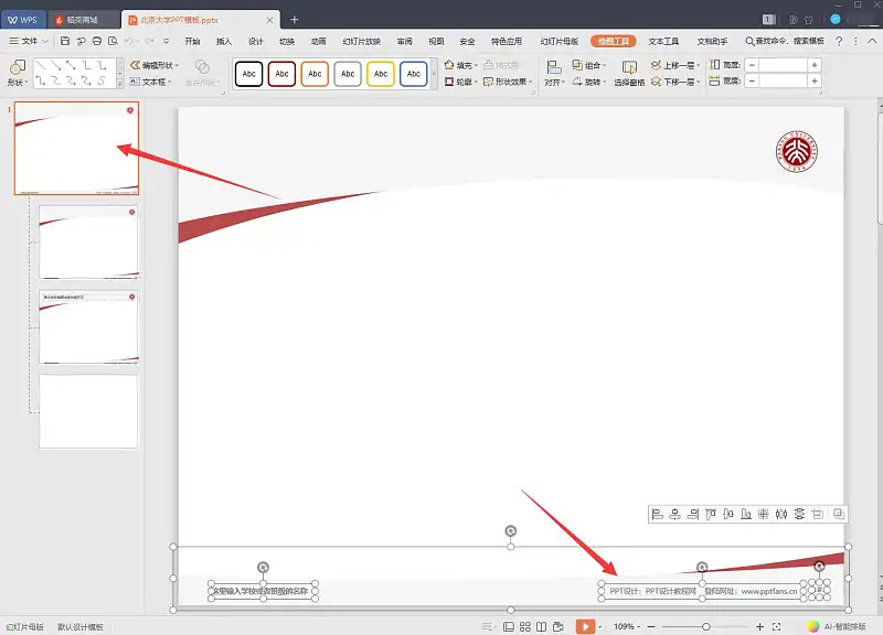 购买模板后您会发现每页底部的文字没法修改?别急,你需要在母版中修改即可。