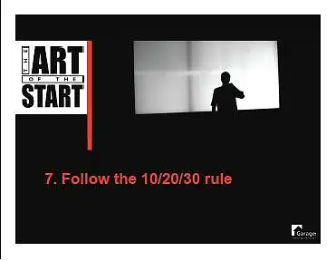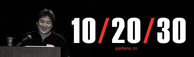 作为一个日常接触许多创业者以及他们的商业计划书和演示的VC,他建议在准备PPT的时候应该遵循10/20/30法则。具体而言就是:演示文件不超过10页,演讲时间不超过20分钟,演示使用的字体不小于30点(30 point)。