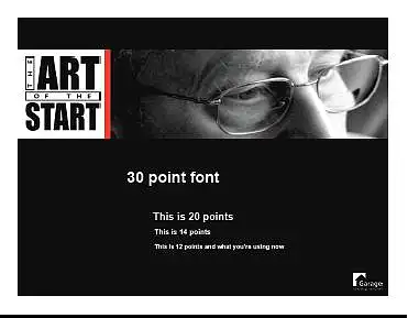 如果有人让你在准备演讲的PPT的时候只能用不小于30点的大字体,你是不是觉得他疯了?不过这正是风险投资家盖川崎(Guy Kawasaki)的建议。